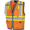 Pioneer Mesh Back Zip Front Surveyor Safety Vest, High Visibility Orange, Small, Polyester